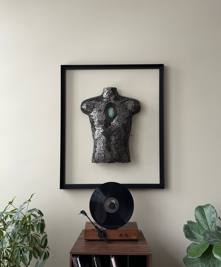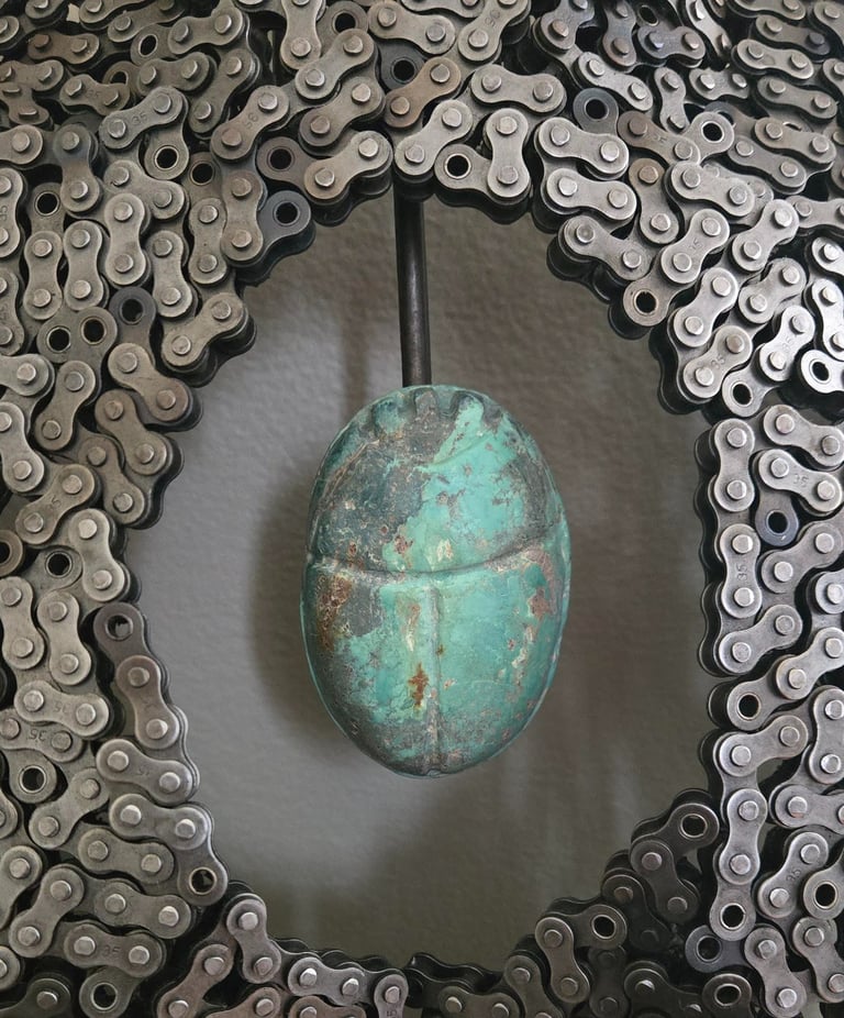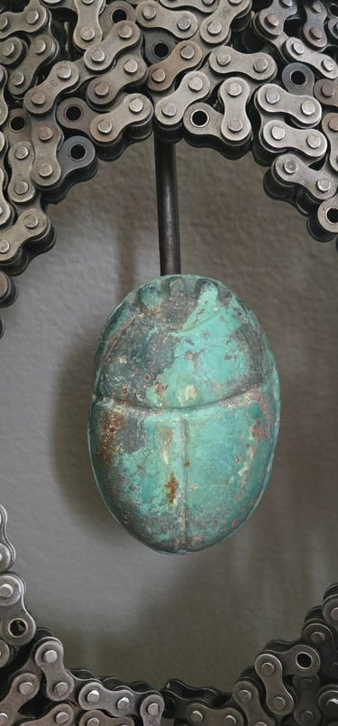 I made this piece for a good friend of mine with Egyptian hertitage. The heart is a scarab made of solid Turquoise. He added the frame, which really enhancess the overall look.