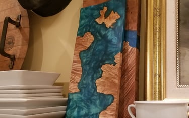 I have made a variety of pieces made of wood and acrylic resin. These projects were started towards the beginning of the pandemic, and have made for wonderful gifts.